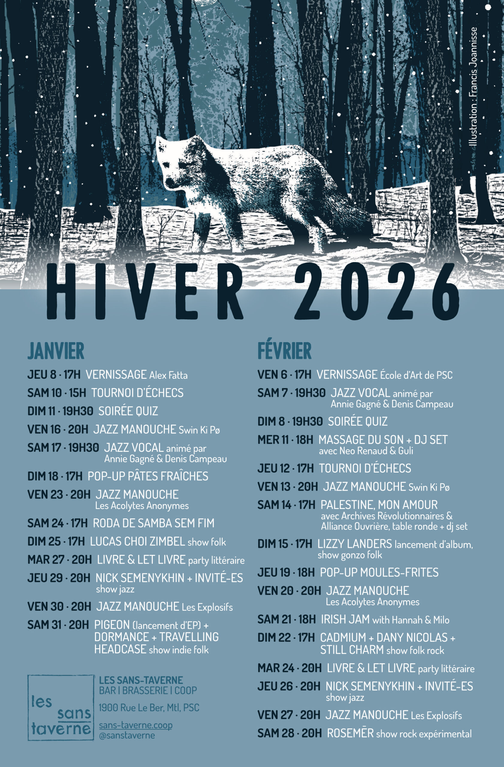 sans patron depuis 7 ans! les sans-taverne BAR bières en fût menu boissons & bouffe événements boutique BRASSERIE canettes & bouteilles points de vente formats pour événements COOP la coop partenariats archives photos/vidéos nous joindre événements à venir En savoir plus Infolettre Prénom Courriel Leave this field empty if you're human: suivez-nous sur Facebook et Instagram pour ne rien manquer Page Facebook